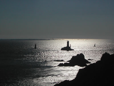 el faro de la Vieille y la isla de Sein. La estatua de Notre-Dame